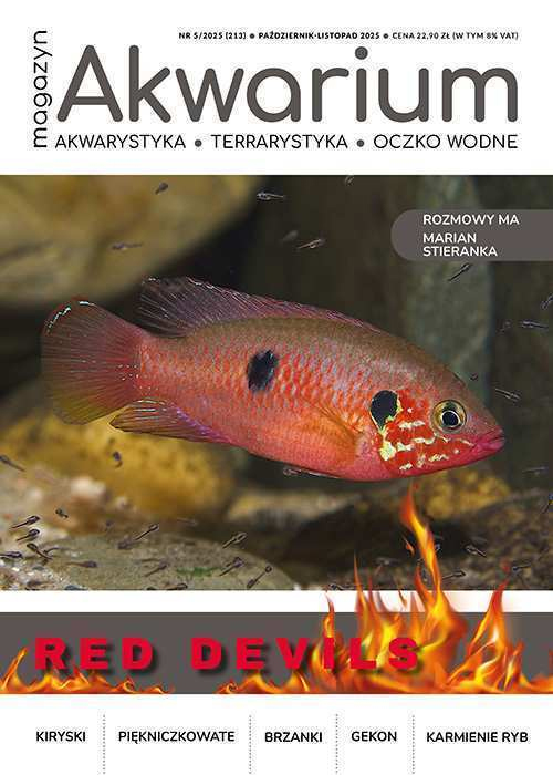 W bieżącym numerze Marian Stieranka, niezwykle zasłużony hodowca, animator życia akwarystycznego i międzynarodowy sędzia ze Słowacji, dzieli się na łamach mA swoim ponad pięćdziesięcioletnim doświadczeniem akwarysty-hobbysty. Michel Keijman opowiada o fascynującej grupie ryb zwanych „czerwonymi diabłami”. Kolejny unikatowy artykuł tego akwarysty i odkrywcy na łamach mA cieszy nas niepomiernie. Piotr Szulada, debiutujący w mA, to znawca i hodowca kirysków. Jak je rozmnożyć? Zajrzyjcie, proszę, do artykułu. Dr Hubert Zientek zabiera nas natomiast tym razem na wycieczkę do Azji, a konkretnie przybliża ryby ze zróżnicowanej grupy brzanek. Czym karmić naszych podopiecznych? Tu rąbka tajemnicy uchyla Elżbieta Cywińska, która wielu akwarystom w naszym kraju dała się poznać jako znakomita hodowczyni ryb żyworodnych. Wreszcie Paweł Walenciak, znawca gadów pracujący na co dzień w Śląskim Ogrodzie Zoologicznym, opisuje chów i hodowlę gekona Tarentola chazaliae.